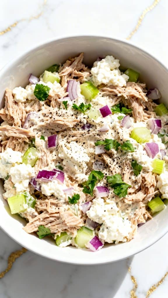 I started making this when I was trying to eat more protein without cooking a big meal. I had tuna. I had cottage cheese. I mixed them together just to see what would happen. And wow. It was creamy without needing a lot of mayo, and it tasted fresh and bright.