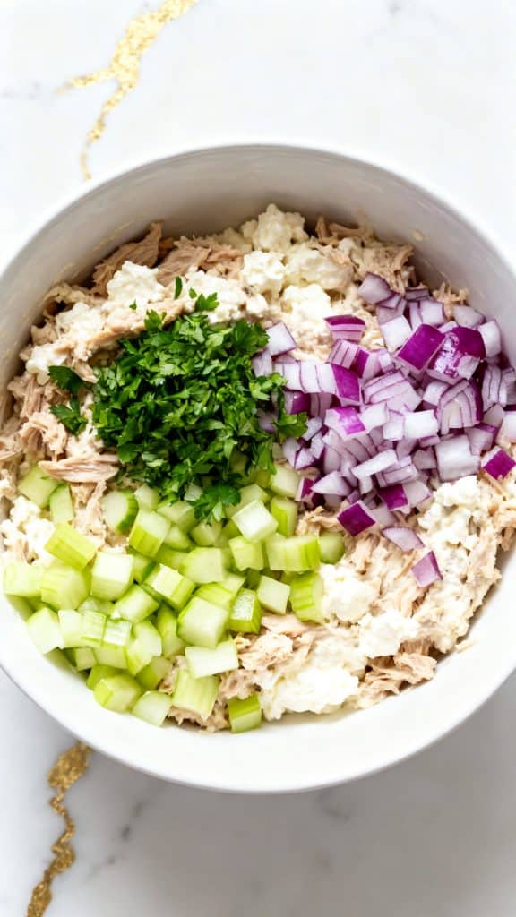 Cottage cheese is packed with casein protein. That’s a slow-digesting protein, which helps you feel full longer. Tuna adds lean protein and healthy fats. The lemon juice brightens the flavor and balances the richness. The celery and onion add crunch, which makes each bite more satisfying.