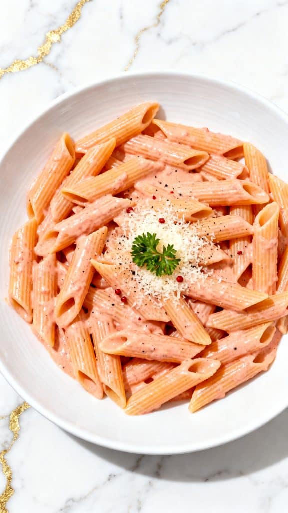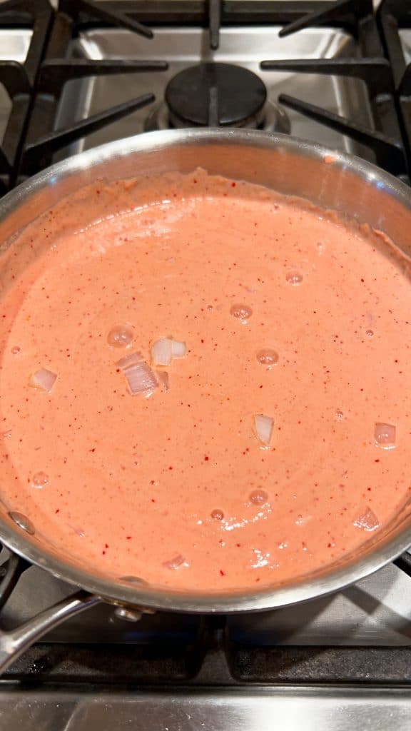 The vodka helps release flavor compounds in the tomatoes that water or fat alone can’t. Blended cottage cheese acts like heavy cream—it emulsifies into the sauce, giving it that creamy texture without separating.