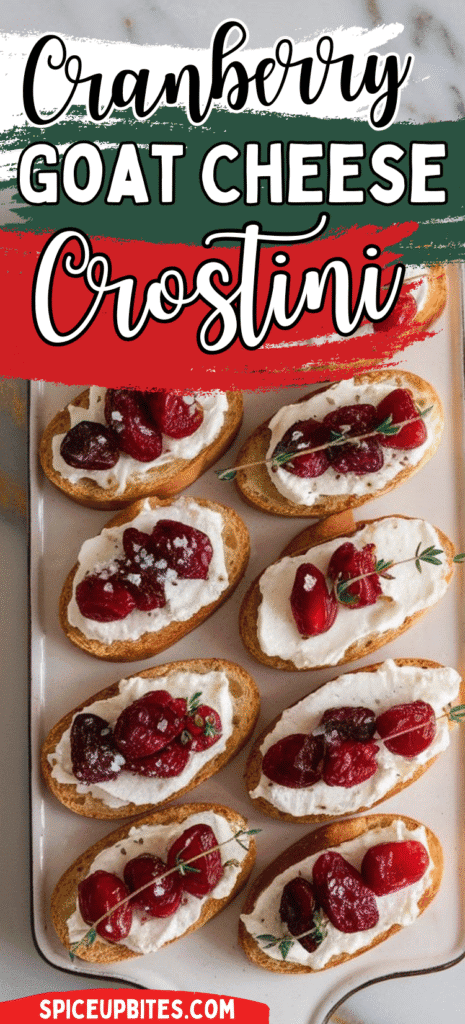 Sprinkle about 2 teaspoons of dried cranberries onto each crostini, gently pressing them into the goat cheese.