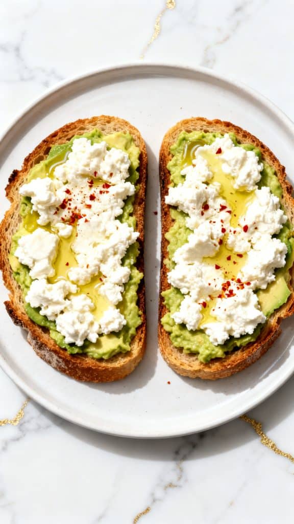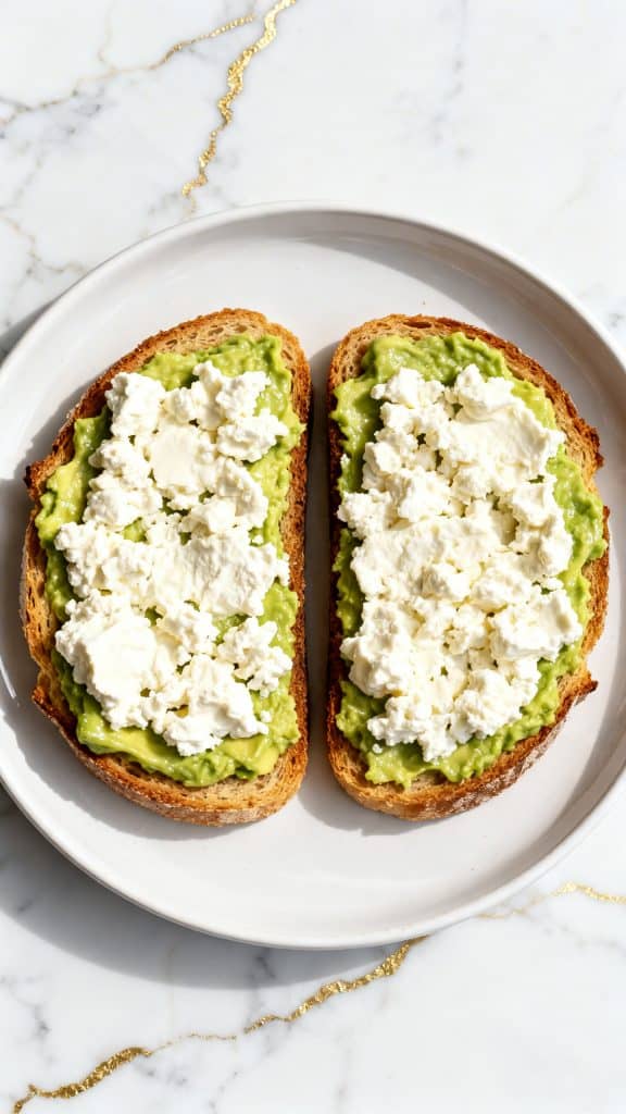 Avocado is rich in healthy fats, which makes it creamy and helps you feel full. Cottage cheese adds protein and a slight tang, balancing the richness. The toasted bread gives crunch, so every bite has contrast.