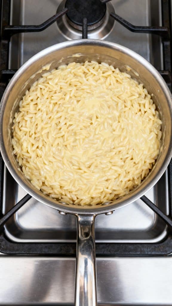 - Stir constantly while cooking the orzo so it doesn’t stick
