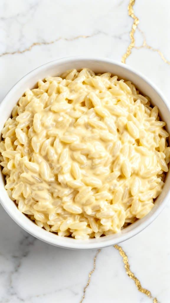 - Not stirring enough → orzo sticks or clumps