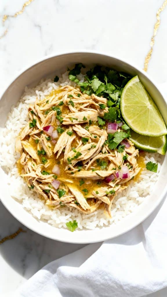 It’s fresh, tangy, and a little zippy from the lime and cilantro, and the crockpot makes the chicken fall-apart tender. This is one of my weeknight go-to meals when I want something satisfying without standing over the stove.