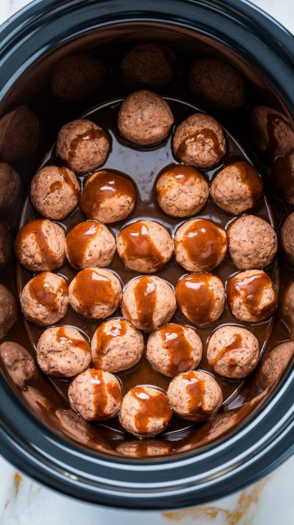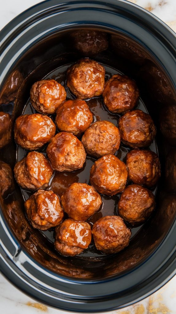 The sugar in the brown sugar and BBQ sauce caramelizes slowly, bonding with the alcohol in the bourbon and creating a thick, syrupy glaze. The slow cooker’s low, moist heat keeps the meatballs juicy while allowing the sauce to thicken without burning.