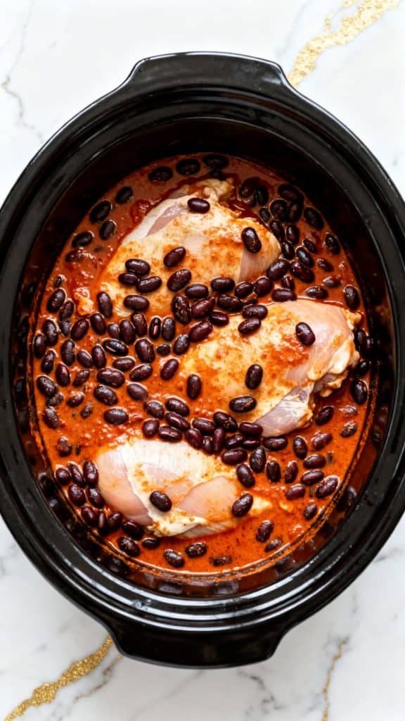 - Use chicken thighs—they stay tender and juicy, even after hours in the slow cooker.