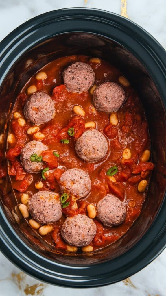 The fat in the cheese and meatballs slowly melts and emulsifies into the tomato-based chili sauce, giving it a creamy, thick texture without curdling. The slow cook time allows flavors to deepen and the spices to bloom, creating that cooked-all-day taste.