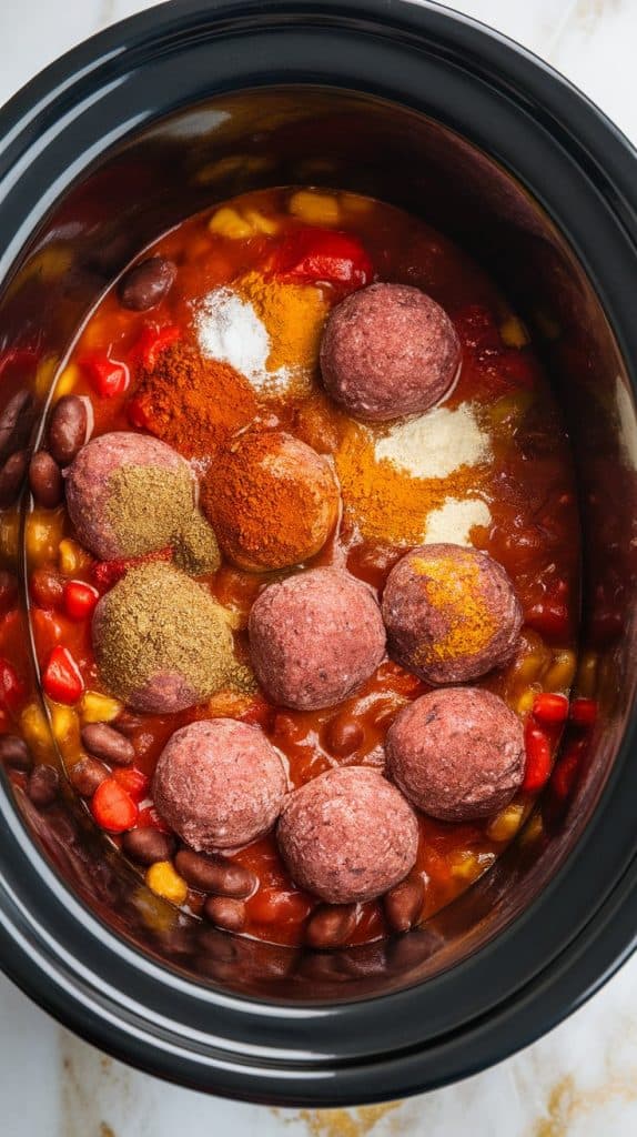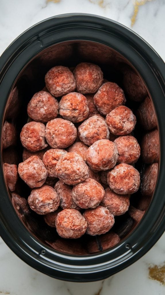 Step 1: Add frozen meatballs to the slow cooker