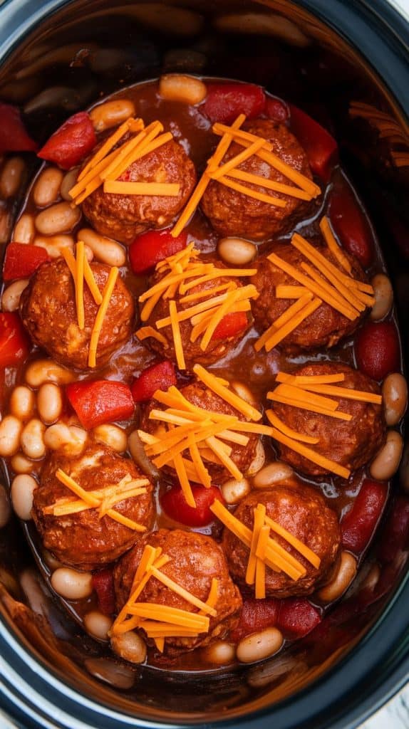 Crockpot Chili Cheese Meatballs