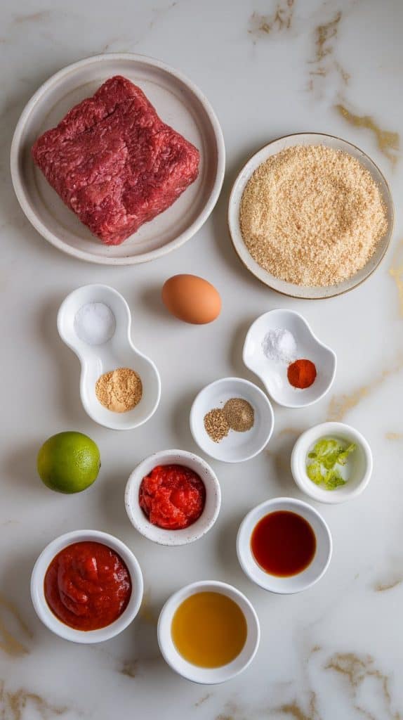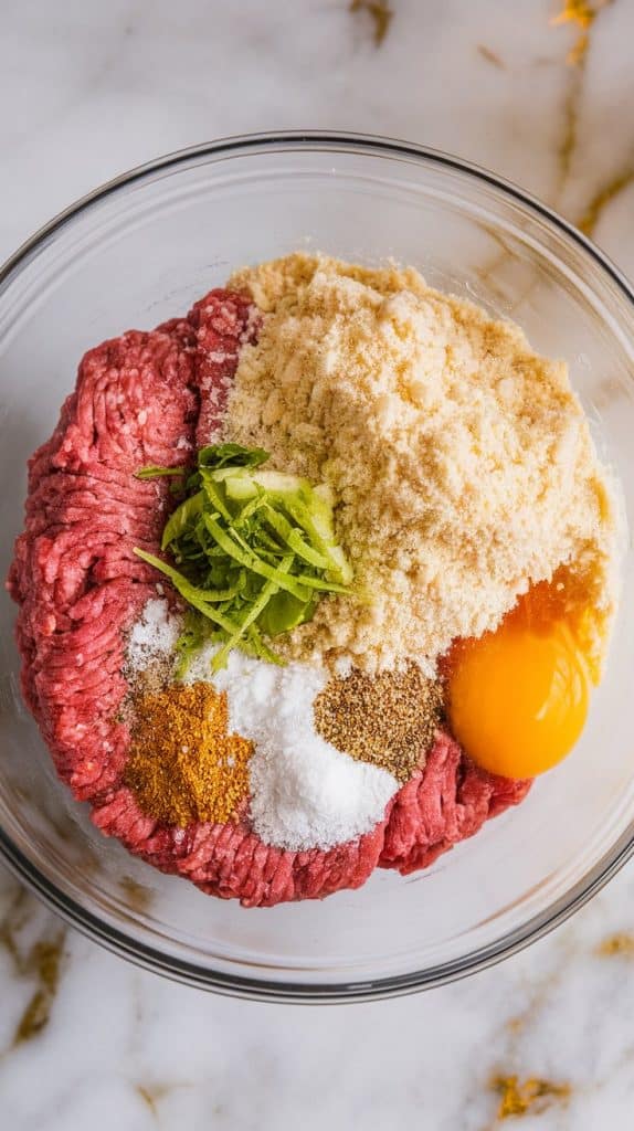 In a large bowl, combine 1½ pounds ground beef, ⅓ cup plain breadcrumbs, 1 large egg, 1 teaspoon garlic powder, 1 teaspoon onion powder, ¾ teaspoon salt, ½ teaspoon black pepper, zest of 1 lime, and 1 tablespoon lime juice. Mix gently with clean hands or a spatula until just combined.
