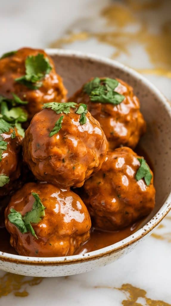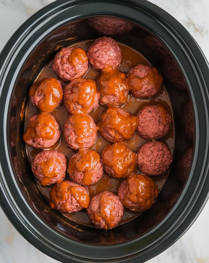I made this the first time with random pantry stuff and a pack of ground beef — and it ended up being one of my favorite slow cooker meals ever. The sauce is tangy, smoky, and just spicy enough, and the meatballs turn out juicy every time.