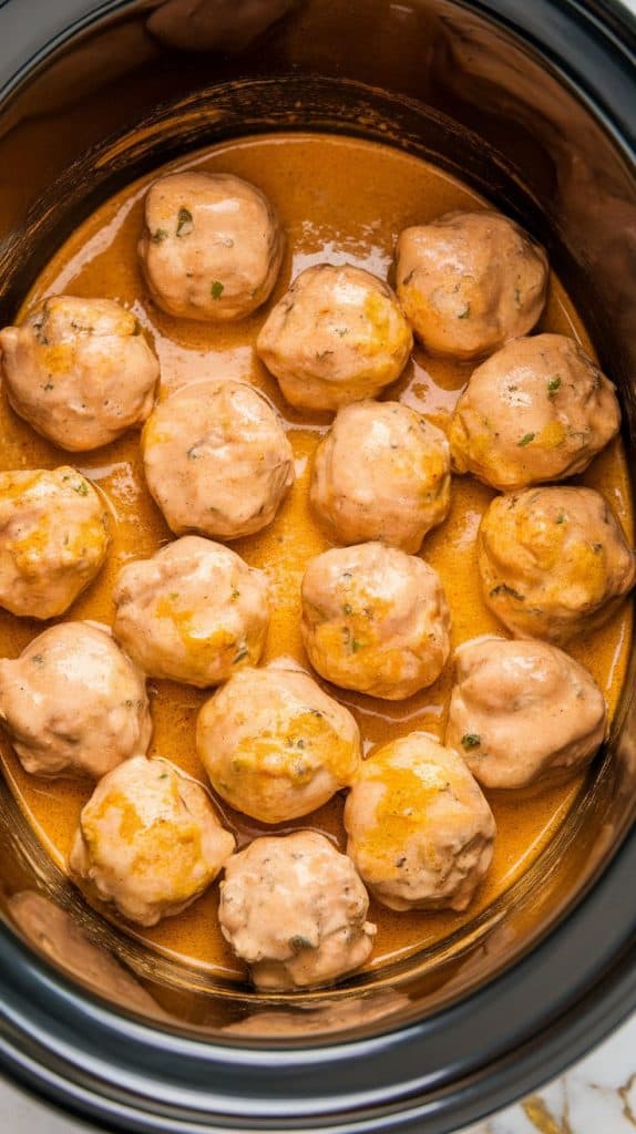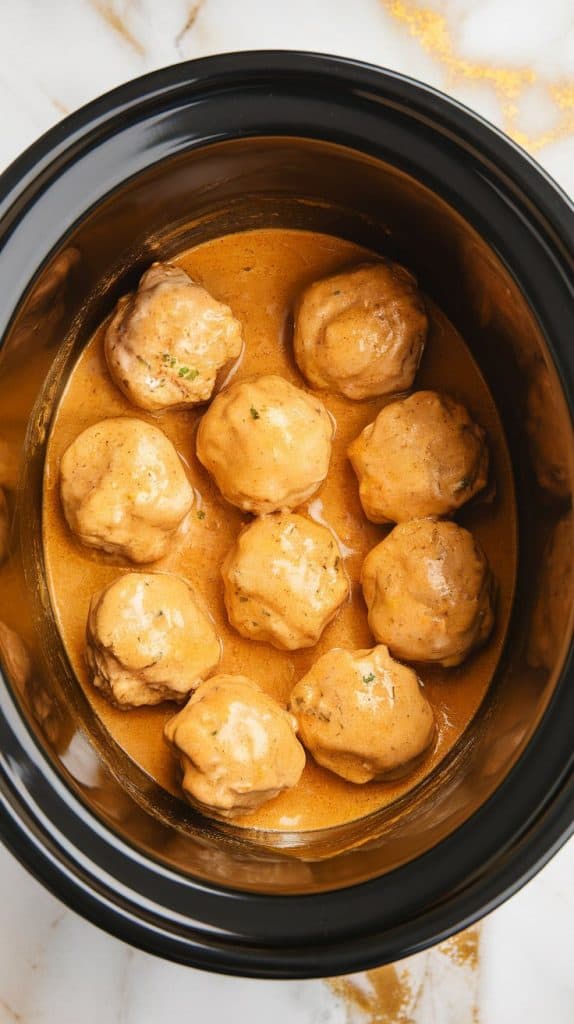 Ground meat binds with egg and breadcrumbs for moisture and structure. The slow cooker keeps the meatballs tender and juicy. Coconut milk has natural fats that create a velvety texture, and the acidity of lime juice balances the richness. Curry paste brings depth without needing a ton of separate spices.