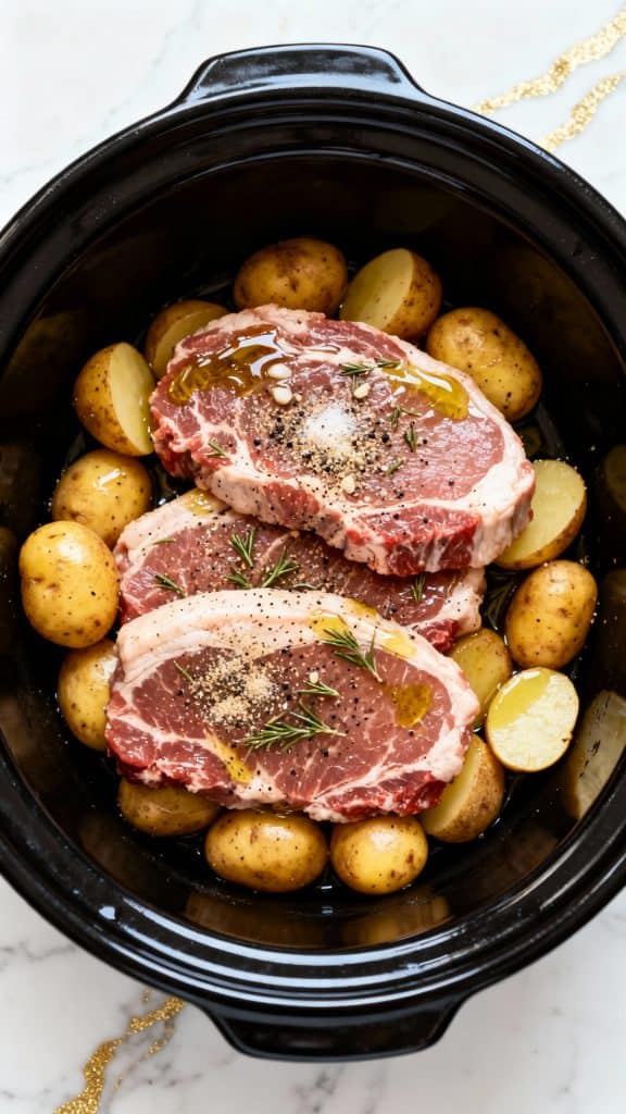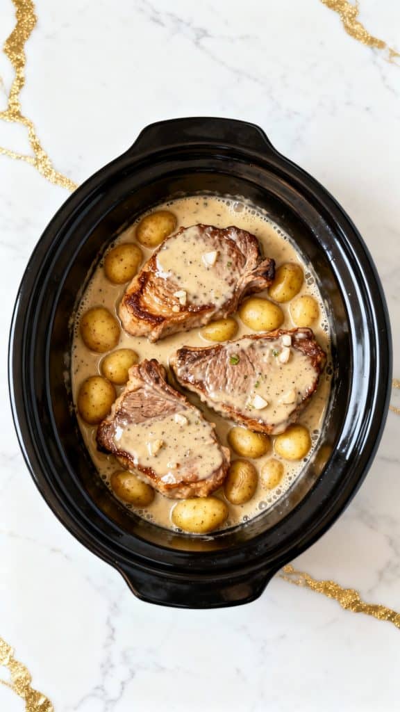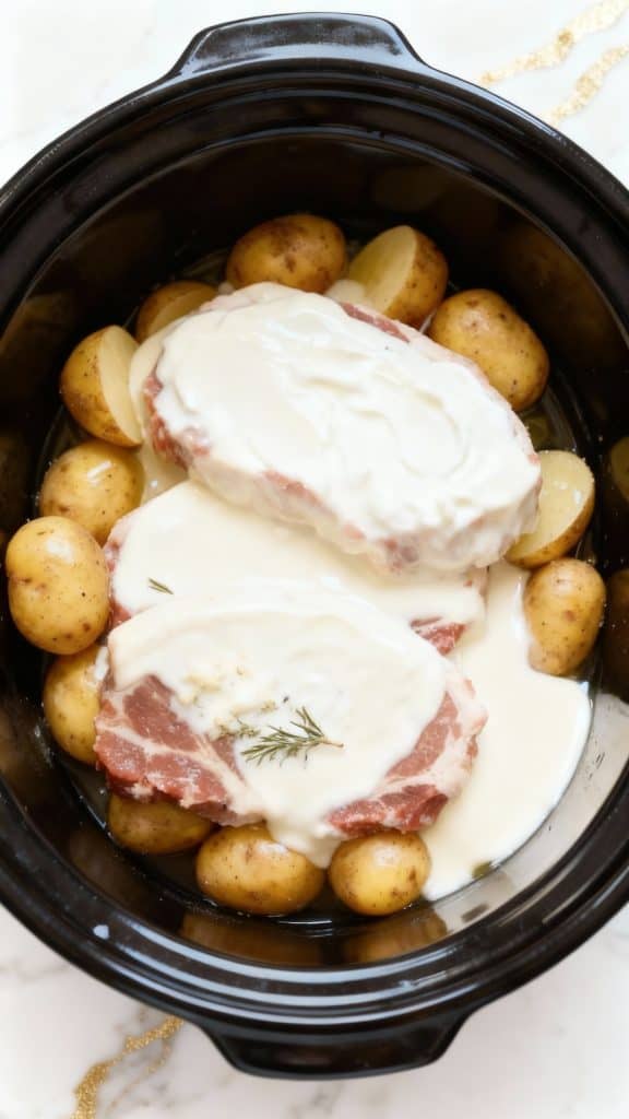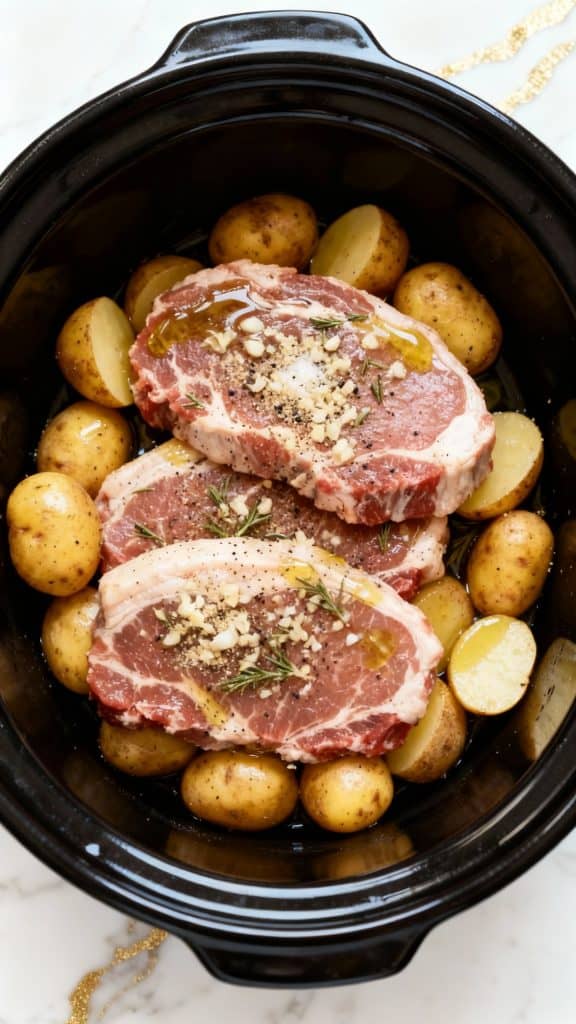 How to Make Crockpot Creamy Garlic Pork Chops and Potatoes