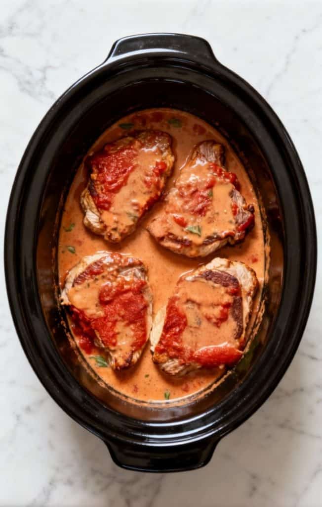 How to Make Crockpot Creamy Tomato Basil Pork Chops