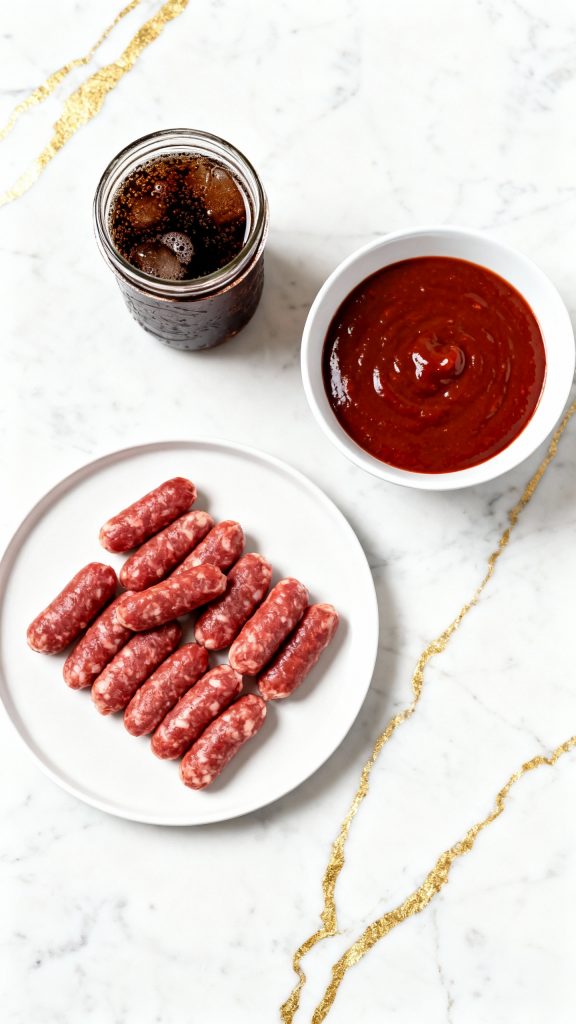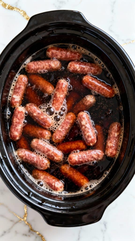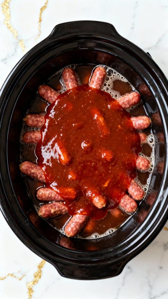 Pour 1 cup of thick BBQ sauce directly on top of the sausages and soda in the crockpot.