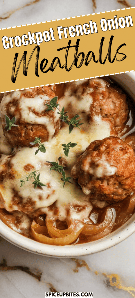 The onions caramelize slowly to bring out their natural sweetness, which pairs perfectly with the savory meatballs. The cornstarch thickens the broth into a silky gravy. And melting cheese on top adds creaminess and pulls everything together like a warm French onion soup.