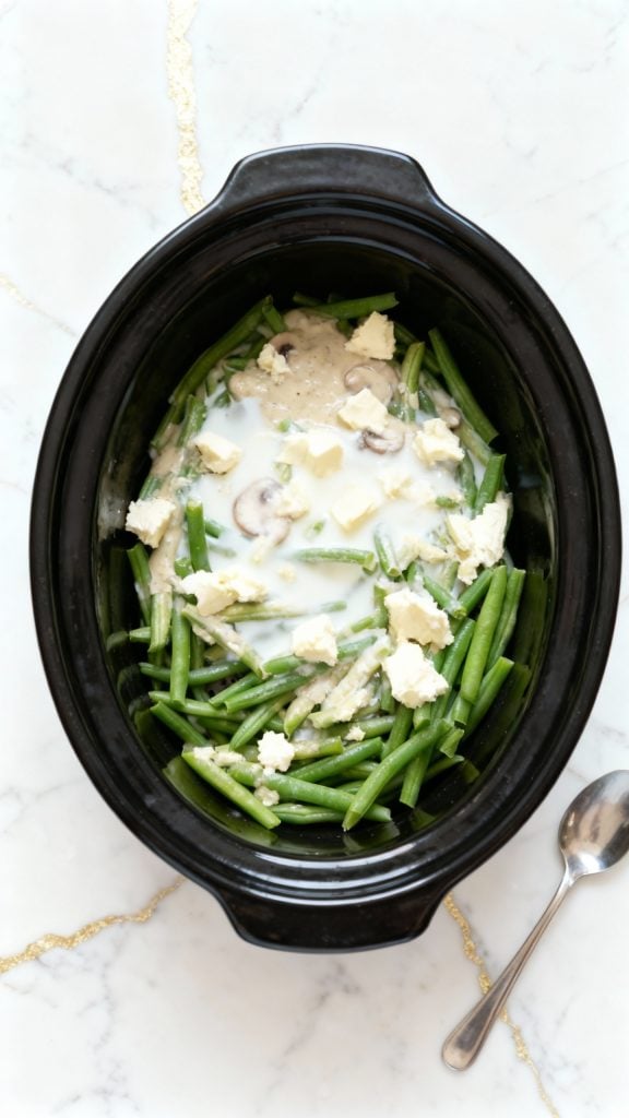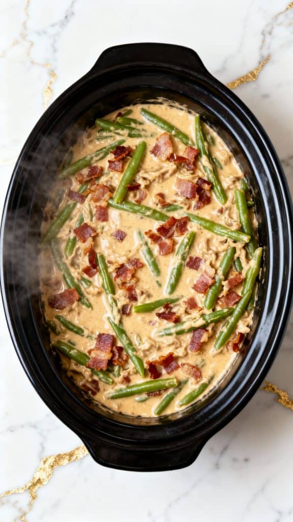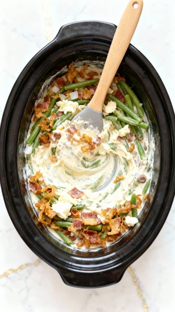 How to Make Crockpot Green Bean Casserole with Bacon and Cream Cheese