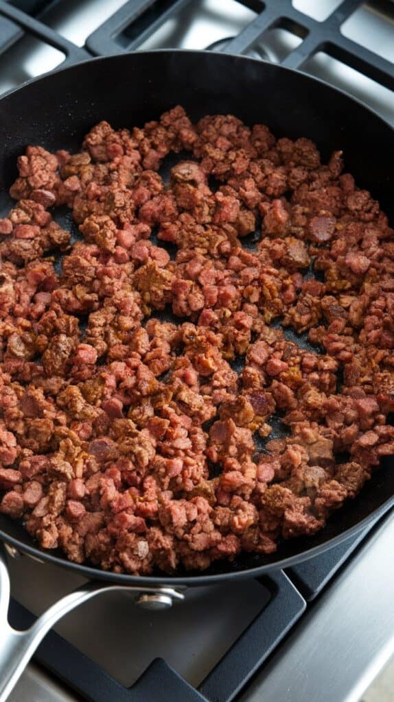 In a large skillet over medium heat, cook 1 lb ground beef and 1/2 lb ground Italian sausage, breaking it up with a spoon, until browned, about 7–8 minutes. Drain excess grease.
