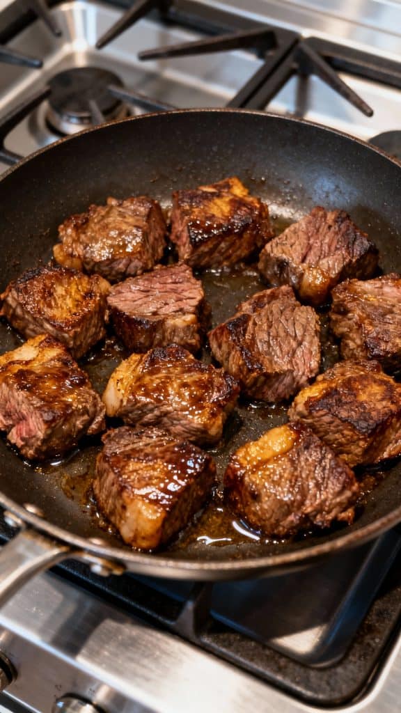 Heat 1 tablespoon oil in a pan over high heat. Sear the 3 lbs chuck roast chunks on all sides until browned.
