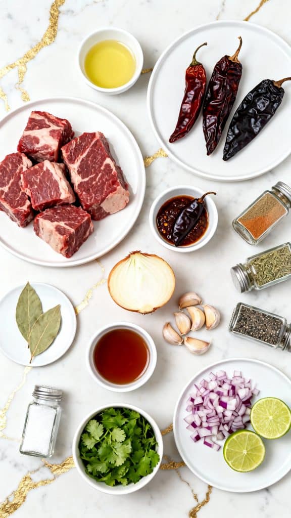 Slow cooking breaks down the collagen in the beef, turning it into gelatin and giving the meat that fall-apart tenderness. The dried chiles add depth and umami, and searing the beef builds flavor through the Maillard reaction (aka browning).