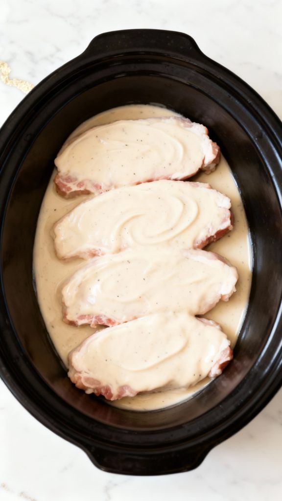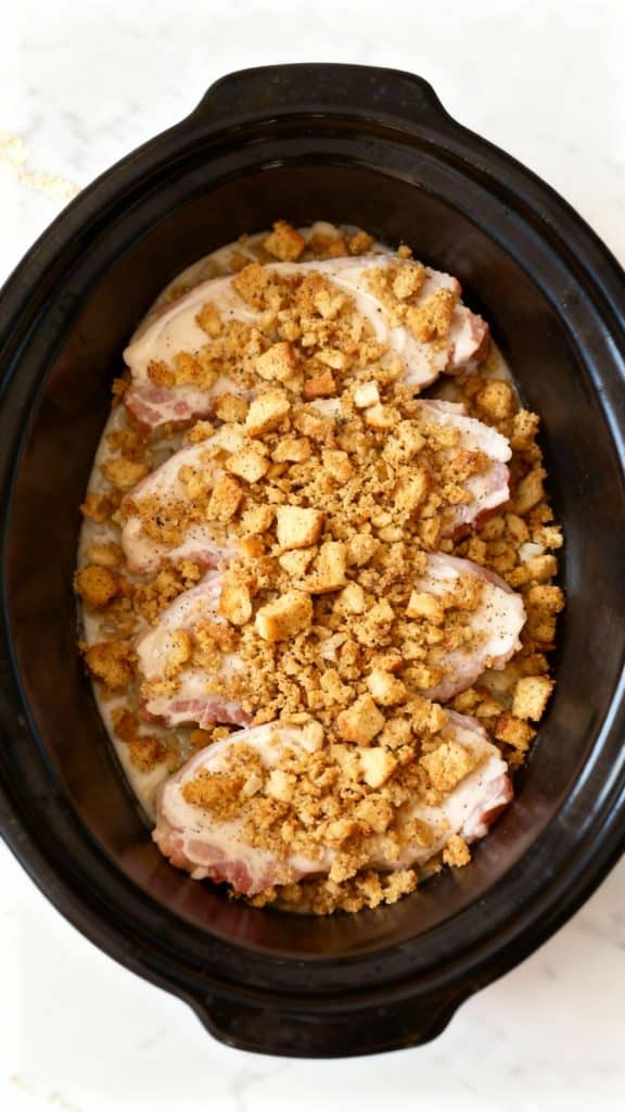 Stuffing acts like a sponge, soaking up the broth and soup mixture to stay soft and flavorful. Slow cooking breaks down the pork chops’ connective tissue, making them super tender without drying them out. The sour cream helps stabilize the sauce and adds richness.