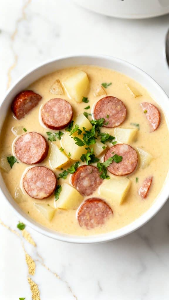 The first time I made this soup, it was one of those chilly evenings where you just want something warm and simple. I had sausage in the fridge and a bag of potatoes that needed to be used. I threw everything in the crockpot and hoped for the best. By dinner, the house smelled incredible. We all went back for seconds.