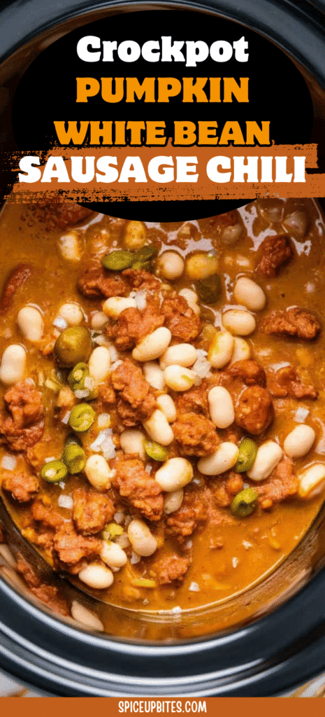 This cozy crockpot pumpkin white bean sausage chili is everything I want on a chilly day. It’s hearty, a little creamy, full of fall flavor, and super easy to throw together.