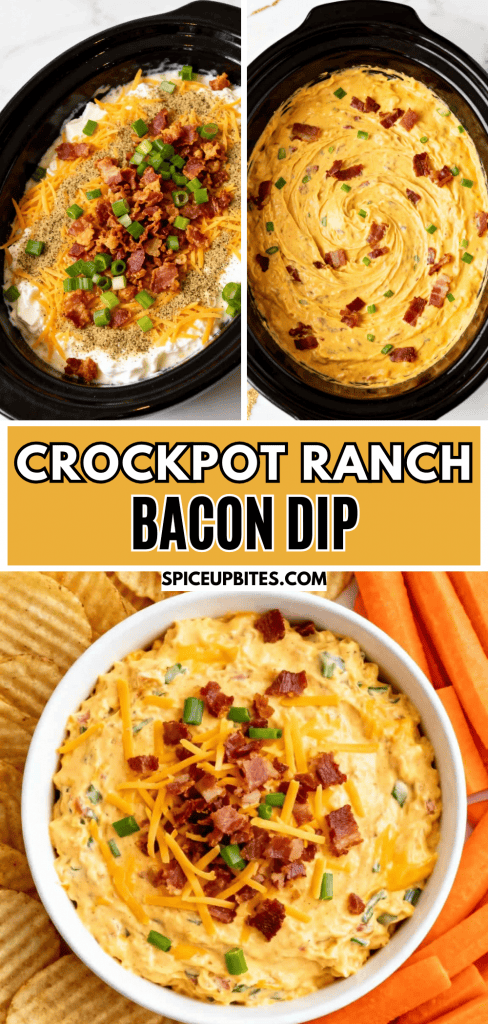 Warm, cheesy, creamy, and loaded with bacon — this Crockpot Ranch Bacon Dip is one of those “set it and forget it” recipes that always disappears first at any party.