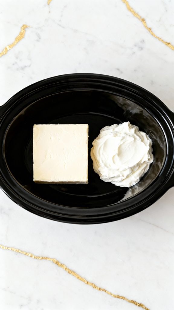 Step 1: Add Cream Cheese and Sour Cream to Crockpot