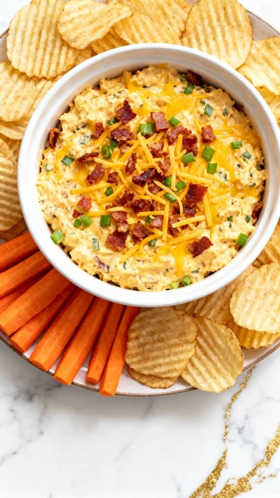Sprinkle a bit of extra shredded cheddar and crispy bacon on top before serving. Serve hot with chips, crackers, or veggies.