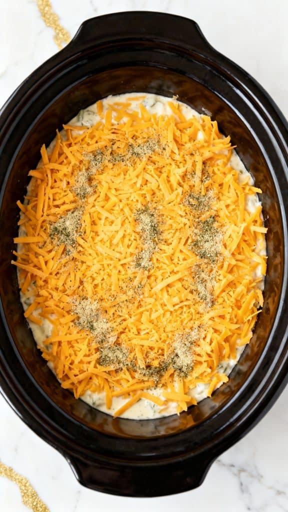 The fat from the cream cheese and sour cream acts as a smooth base that helps emulsify all the ingredients. The cheddar cheese melts evenly without clumping thanks to the gradual heat from the slow cooker. Ranch seasoning has powdered buttermilk, garlic, and herbs, which give this dip its signature flavor and tang without needing to add a ton of other spices.