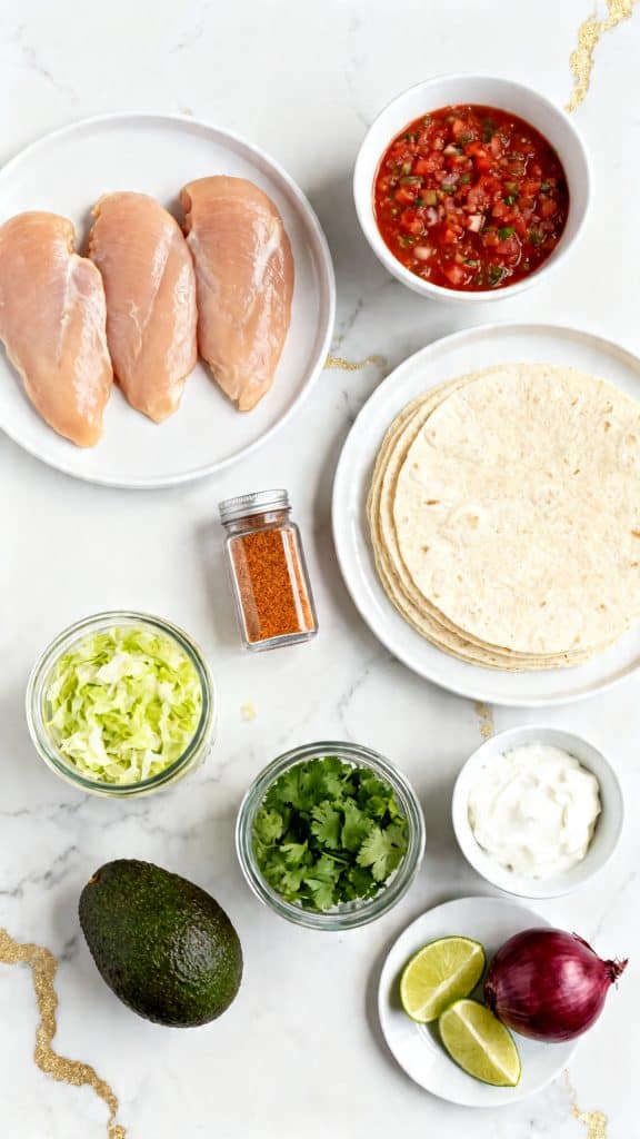 Chicken breasts are lean, so they need moisture to stay tender. The salsa adds water, acid, and flavor while the crockpot cooks everything gently over time. That slow heat helps break down the chicken so it shreds easily. The taco seasoning adds salt and spices, which season the meat all the way through as it cooks in the salsa. Lime juice brightens the flavor and balances the richness of the toppings.