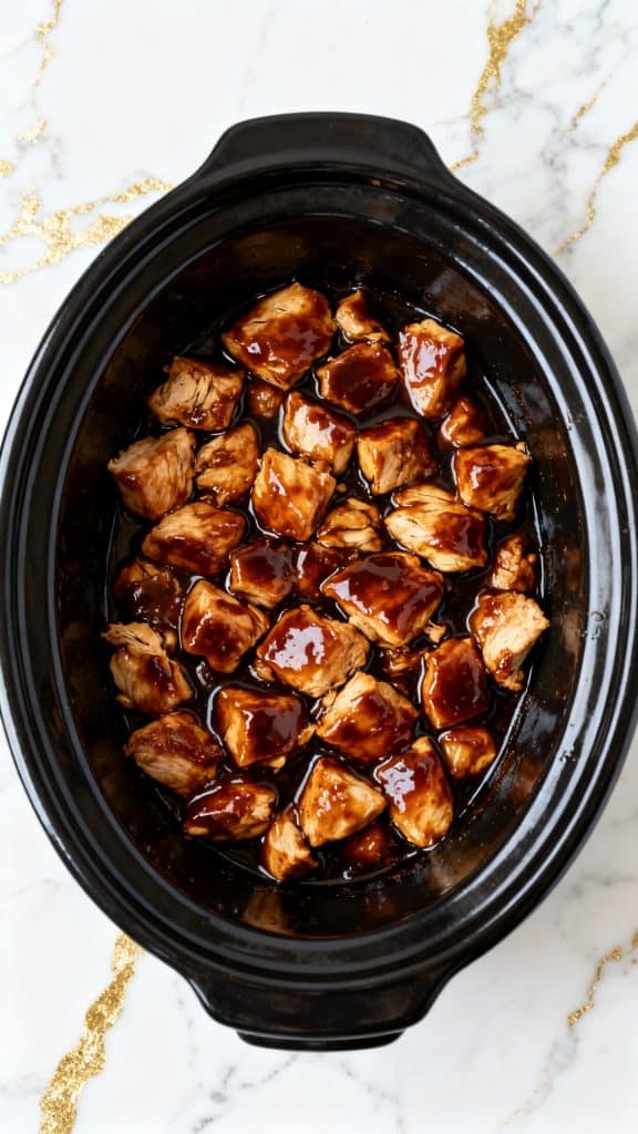 Cubing the chicken increases surface area. That means more sauce sticks to every piece. Slow cooking breaks down the proteins gently, keeping the chicken tender.