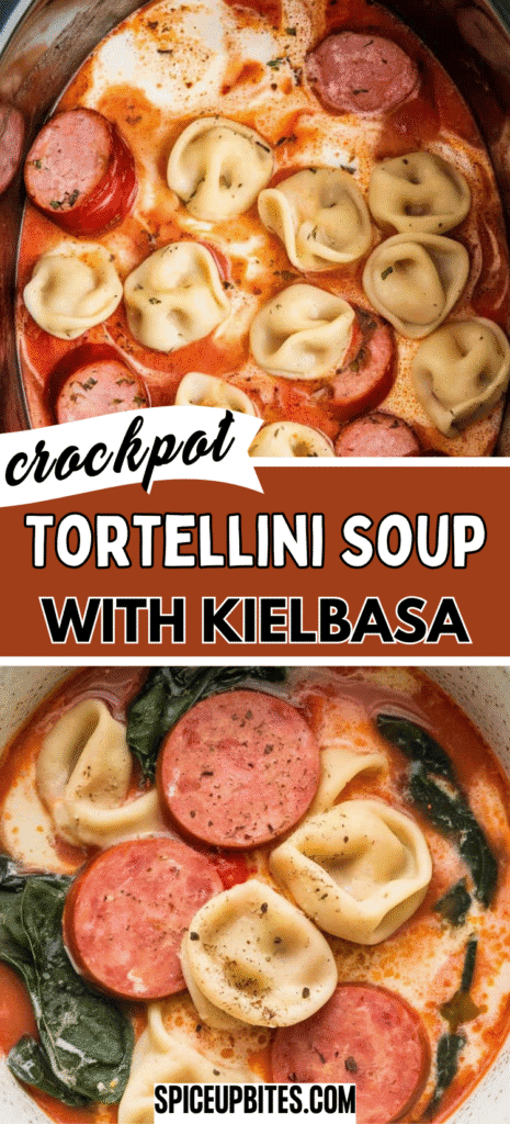 This Crockpot Tortellini Soup with Kielbasa is pure cozy comfort in a bowl.