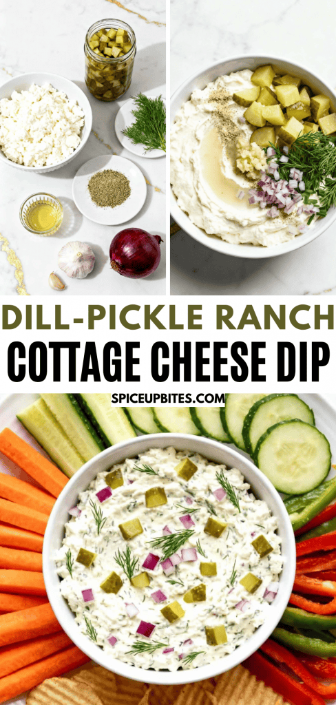 This dip is everything: creamy, tangy, herby, salty, and packed with bold ranch and pickle flavor. Blending the cottage cheese gives it a smooth, whipped texture that feels like a treat but takes just minutes to make.