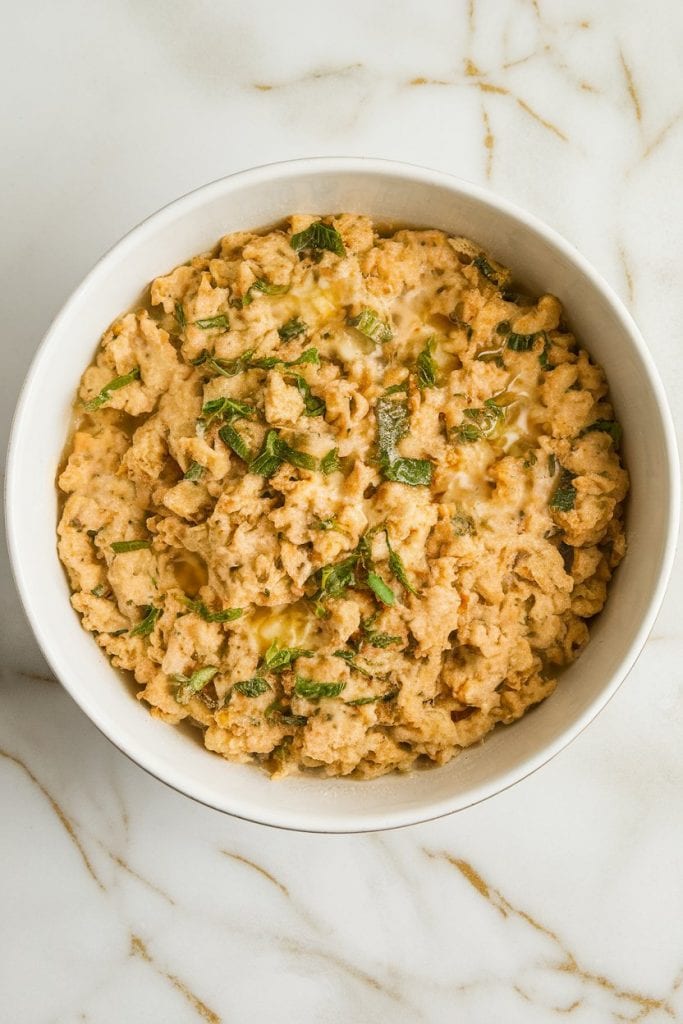 - Let the stuffing sit for a few minutes after mixing so it fluffs up