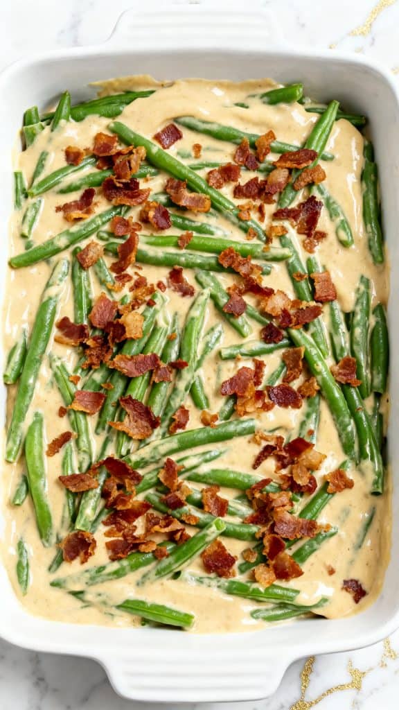 This cream cheese and bacon green bean casserole is everything you love about comfort food—rich, creamy, and full of flavor. It’s a fresh take on a classic, and once you try it, there’s no going back to the canned stuff. Give it a go, and leave a comment to let me know how it turned out or if you put your own spin on it!