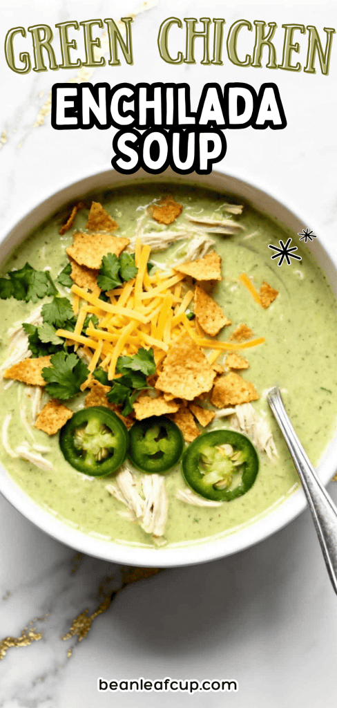 This Green Chicken Enchilada Soup is warm, cozy, and packed with flavor. It’s creamy, a little tangy from the green enchilada sauce, and full of shredded chicken, beans, and cheesy goodness.