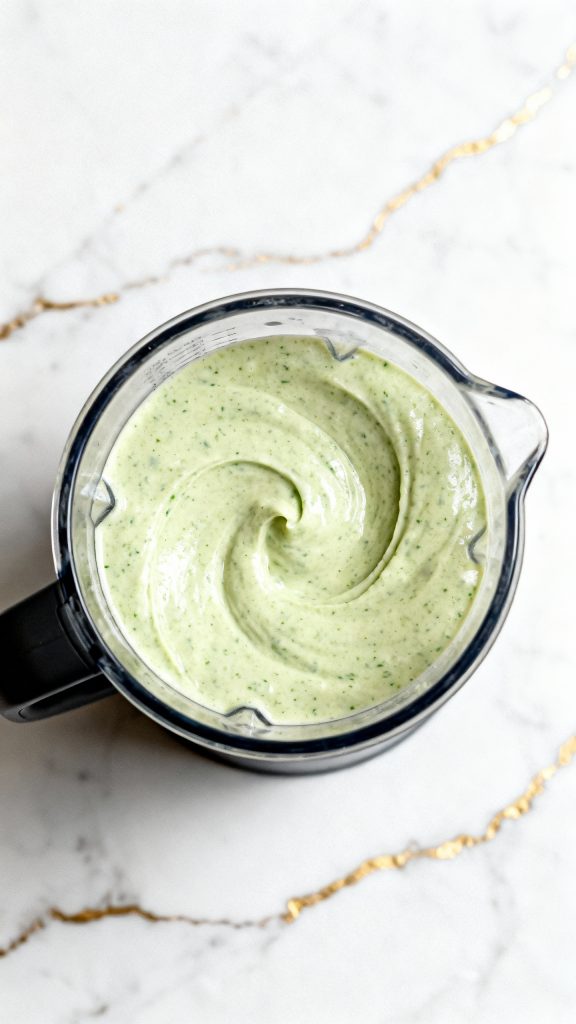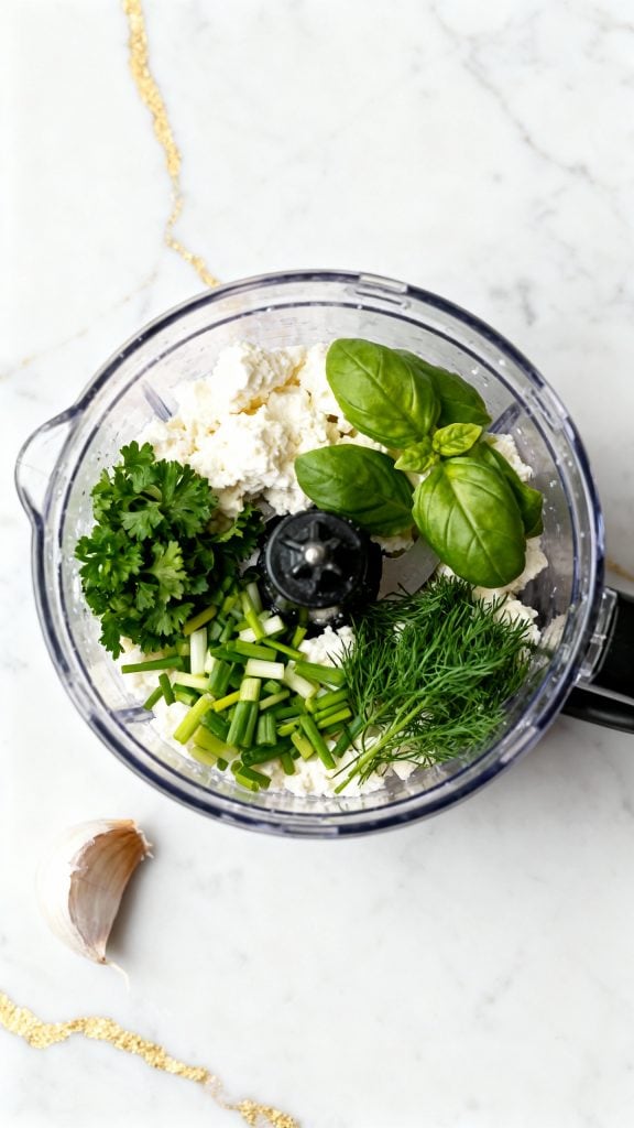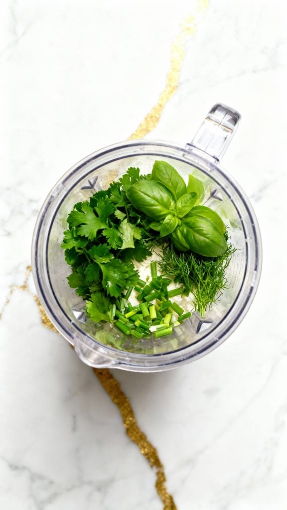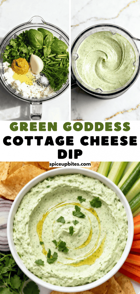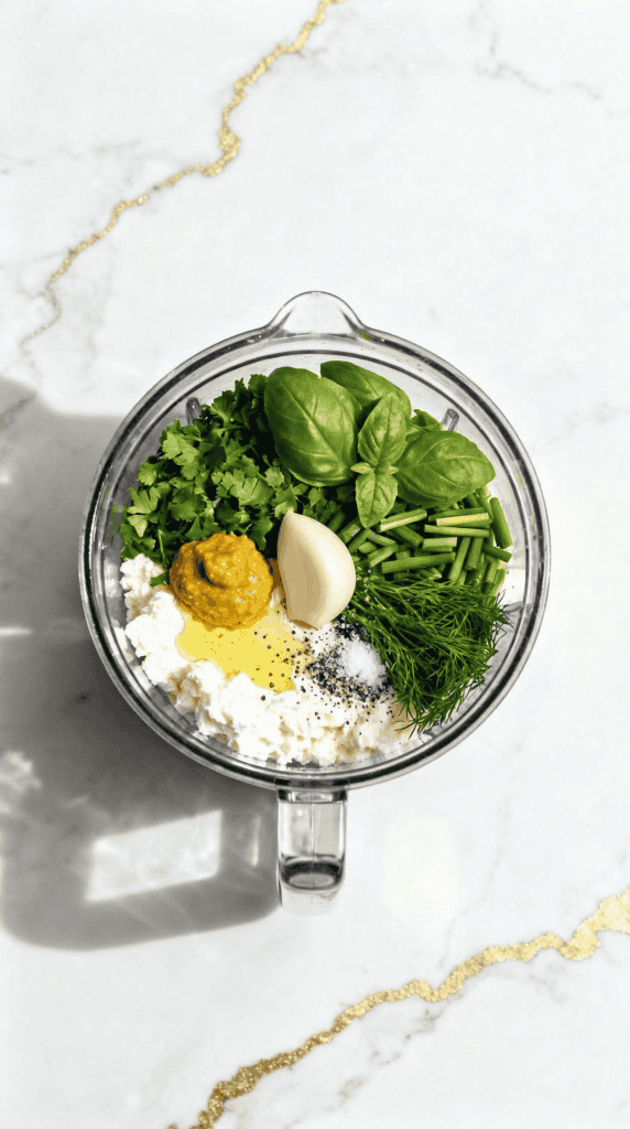 Cottage cheese is loaded with casein protein, which gives it a thick and creamy base. When blended, those curds break down into a super smooth texture. The herbs release their natural oils when blended, giving the dip that punchy green flavor without needing extra fat. Lemon juice and Dijon add brightness and depth.
