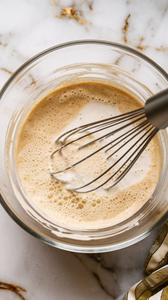 In a bowl, whisk together 1 can (10.5 oz) cream of mushroom soup with 1/2 cup milk until smooth.
