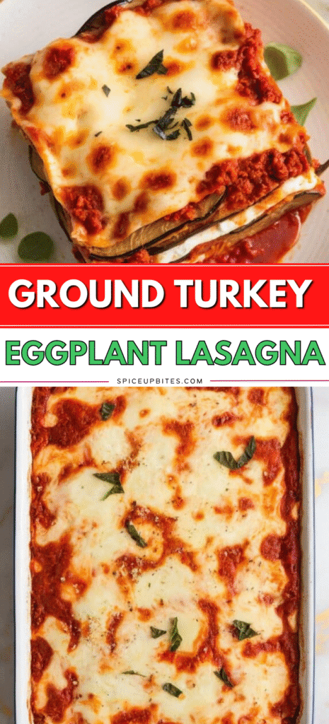 It’s packed with flavor, has all the cozy feels of a traditional lasagna, but swaps the pasta for roasted eggplant slices and uses lean ground turkey instead of beef.