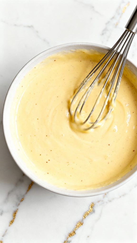 In a medium bowl, whisk 5 large eggs, 1¾ cups whole milk, ¼ cup heavy cream, ½ tsp salt, ¼ tsp black pepper, and ½ tsp garlic powder until smooth and fully combined.