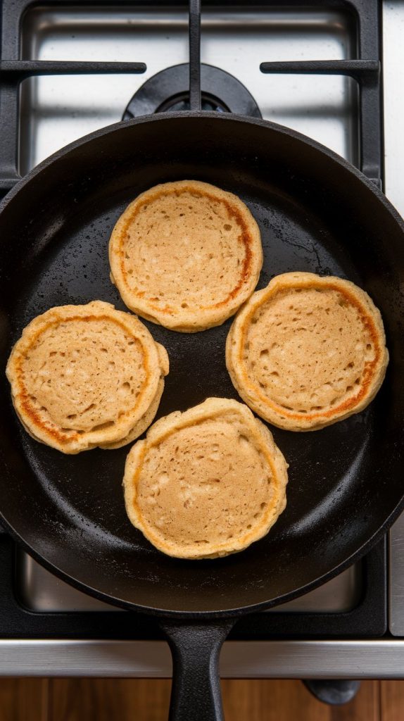 Pour about 2–3 tablespoons of batter per pancake into the skillet. Cook for 2–3 minutes per side, or until golden brown and cooked through.
