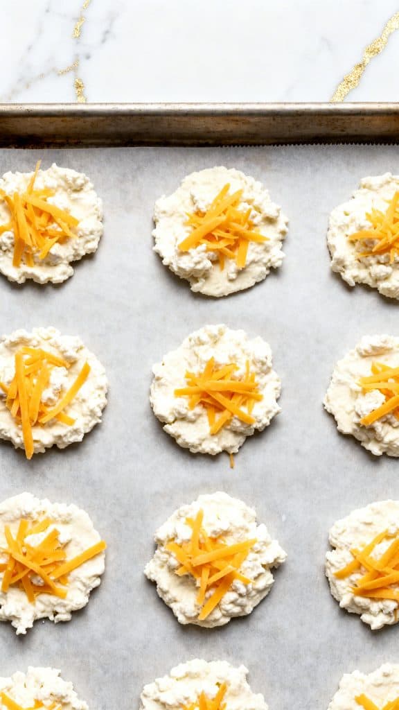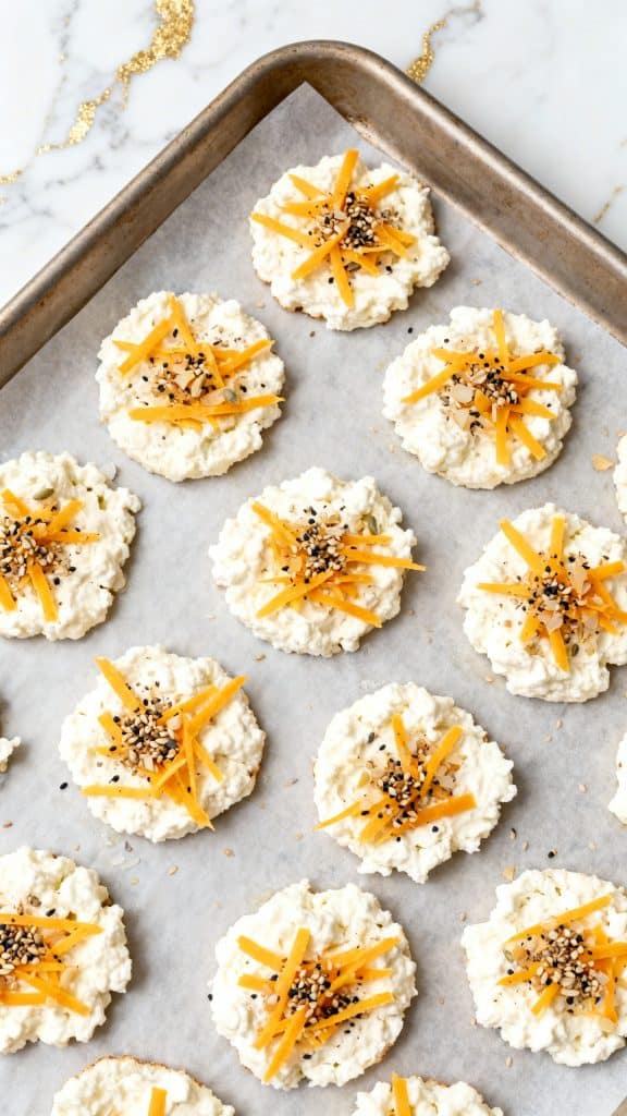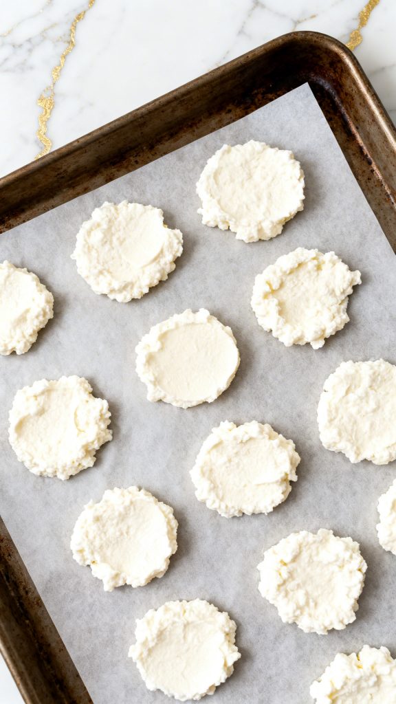 Line a baking sheet with parchment paper. Spoon 1 cup cottage cheese onto the sheet and spread into small thin rounds.