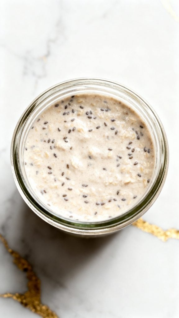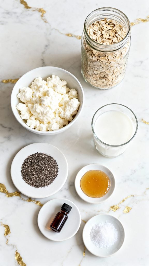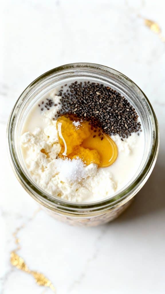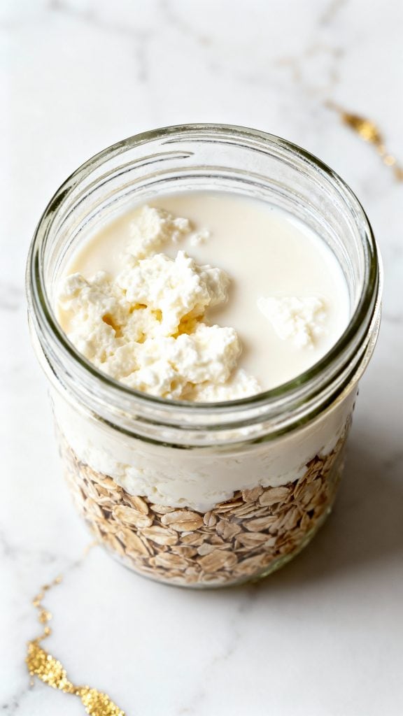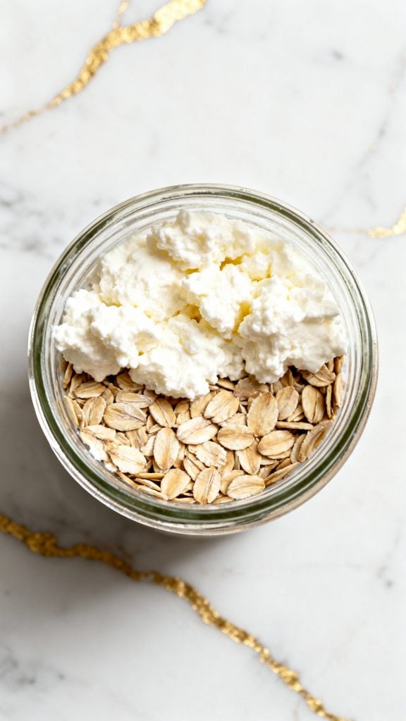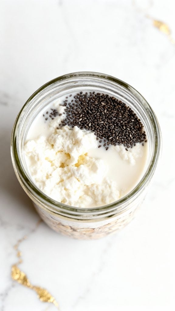 Cottage cheese adds complete protein and creamy texture without needing to cook. Chia seeds absorb liquid overnight, thickening the mix and adding fiber. The oats soften just enough in the milk, turning everything into a spoonable, hearty breakfast that holds you over.