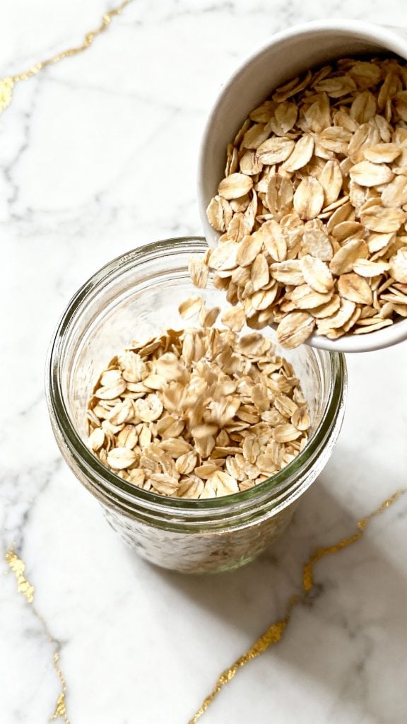 Scoop ½ cup of rolled oats into your jar.