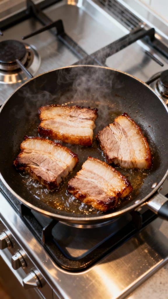 If using pre-cooked chashu pork, quickly sear slices in a hot pan with 1 tbsp sesame oil until slightly crisp on edges.