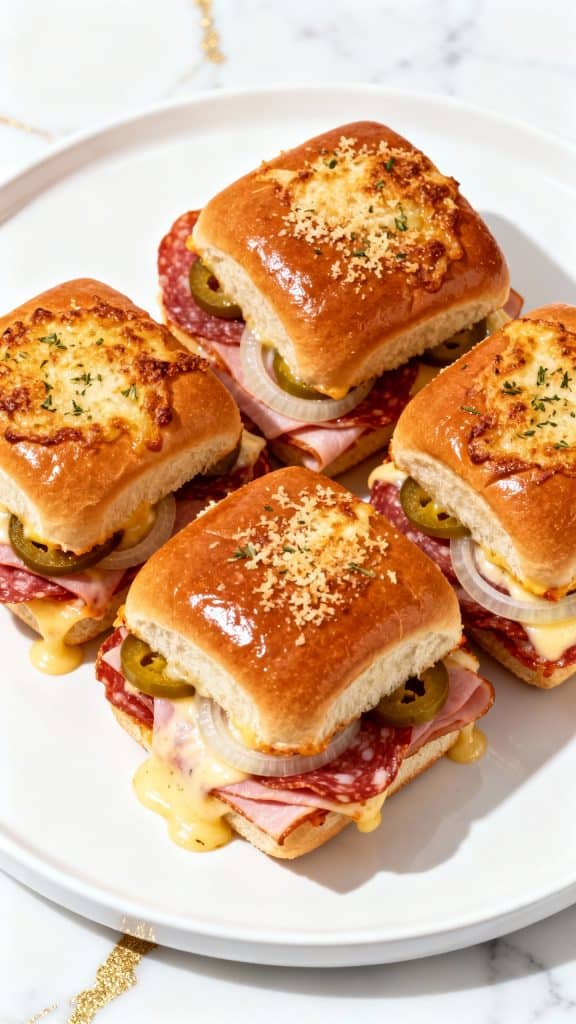 The melted provolone acts like glue, holding all the layers of meat and toppings together. The mayo and mustard give a creamy, tangy base so the bread doesn’t get soggy. The Hawaiian rolls stay soft inside but get crispy and flavorful on top thanks to the butter topping, and baking everything sealed together fuses the flavors into every bite.