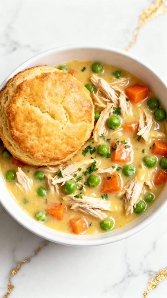 Crockpot chicken pot pie has tender chicken, soft vegetables, and a creamy sauce. It gives you the cozy taste of pot pie without needing much extra work. Serve it with biscuits or simple bread for a mild dinner that feels warm and easy.
