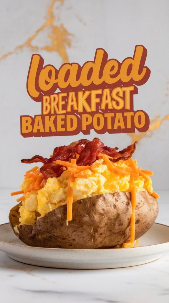 You’ll get crispy bacon (or smoky tempeh), fluffy scrambled eggs, gooey cheddar, and a fluffy baked potato that soaks it all up. Finish it with fresh chives, and you’ve got the perfect breakfast—or honestly, a great dinner.